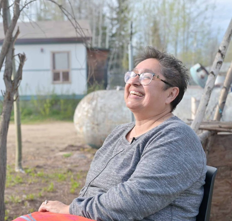 Nancy Lafleur is a Cree woman who was raised on the northern shores of the Montreal Lake in the small communities of Molanosa and Weyakwin. Nancy’s connection to stories is anchored in the lands she grew up on.  In 2016, Nancy made her first, “ribbon skirt,” and what started as creating one skirt grew to several hundred over the past six years.